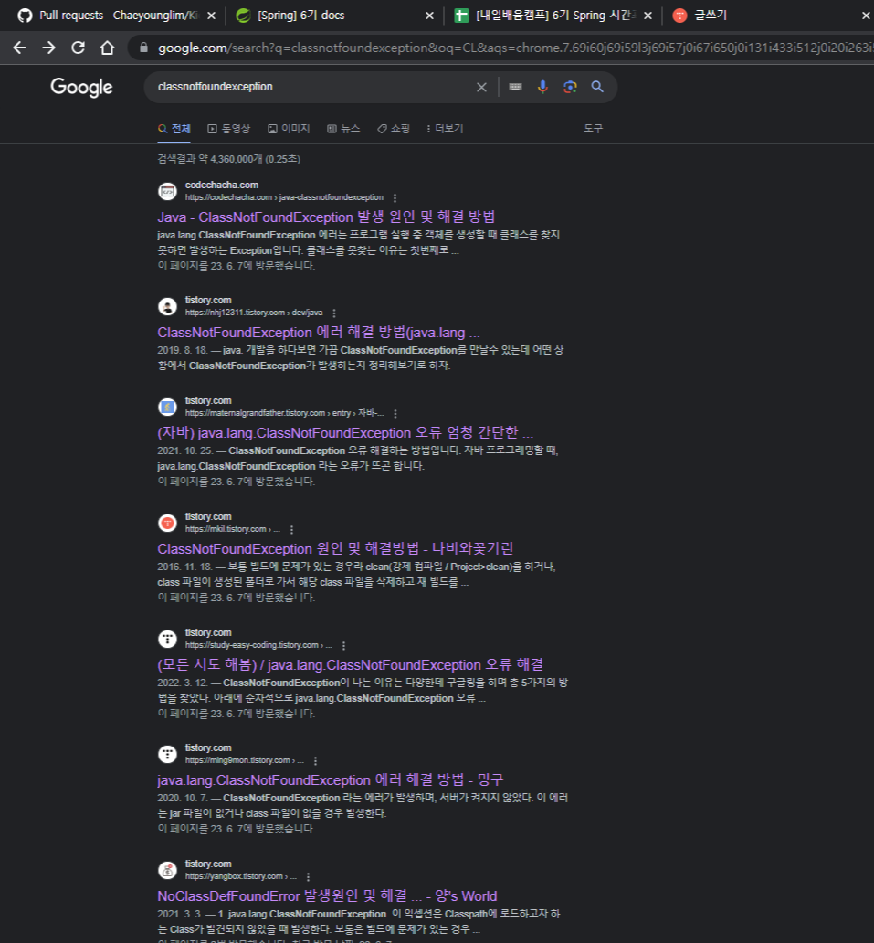 컴파일하는 과정에서 ClassNoFoundException 오류가 발생했다.