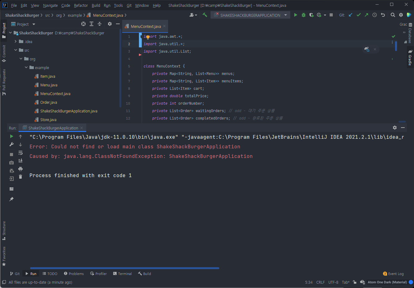 다시 github에서 클론을 하고, JDK를 설정해준 후에 build 환경 설정도 마친 후에 run을 해보았다.