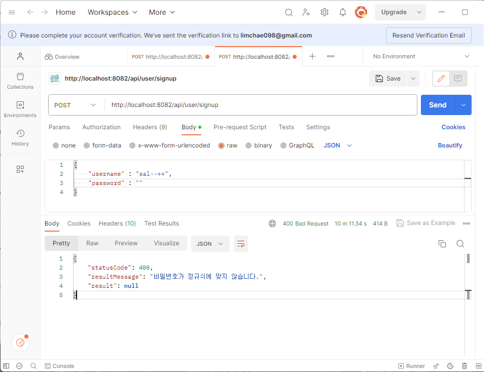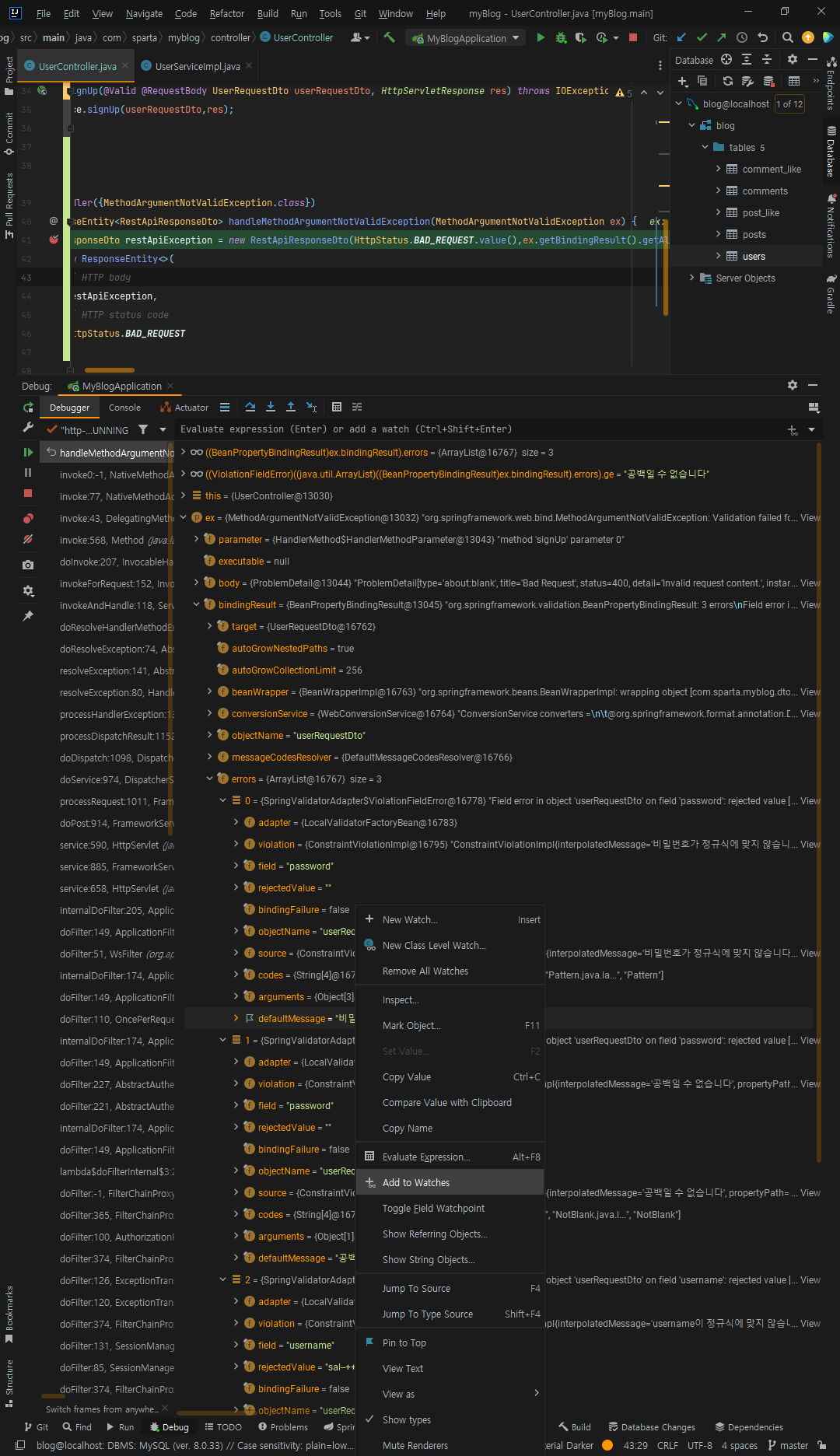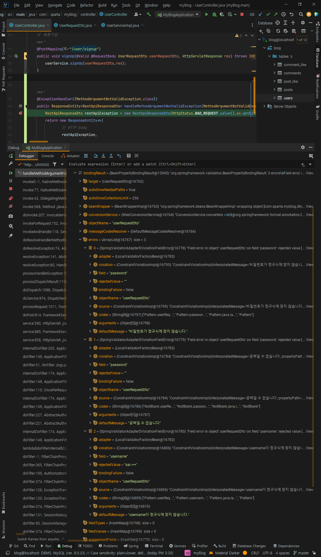 Dto 클래스 내에 Validation message를 볼 수 있다.
