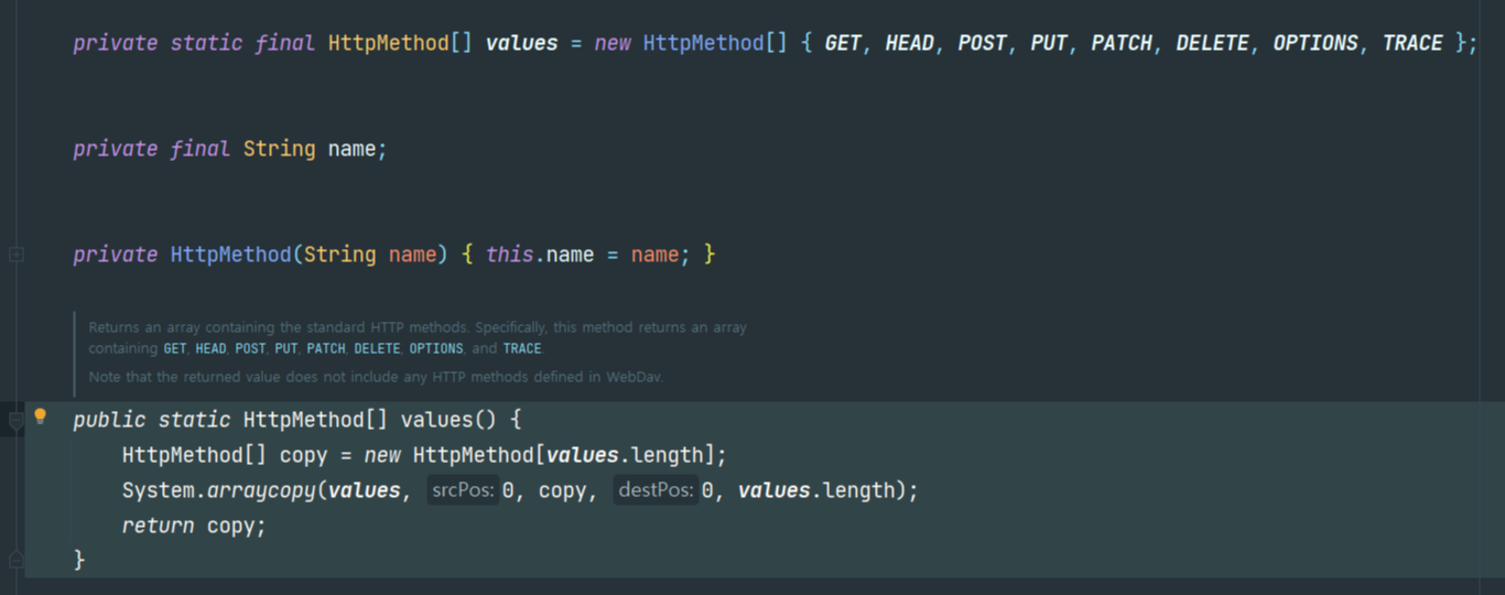먼저, requestMatchers 구현체를 살펴보다가, HttpMethod 구현체도 같이 살펴보았습니다.