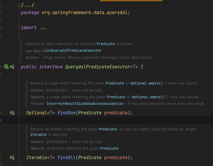 의존성을 추가하면 Spring Data 에 의해 QueryDslPredicateExecuter 인터페이스가 추가가 된다.