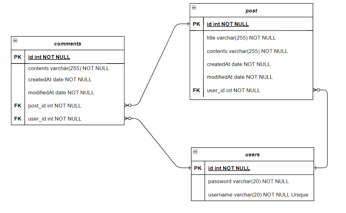 { "id" : " " , "title" : " ", "user_name" : " ", "contents" : " ", "createAt" : " ", "modifiedAt" : " " } |